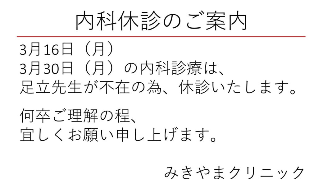内科休診のお知らせ